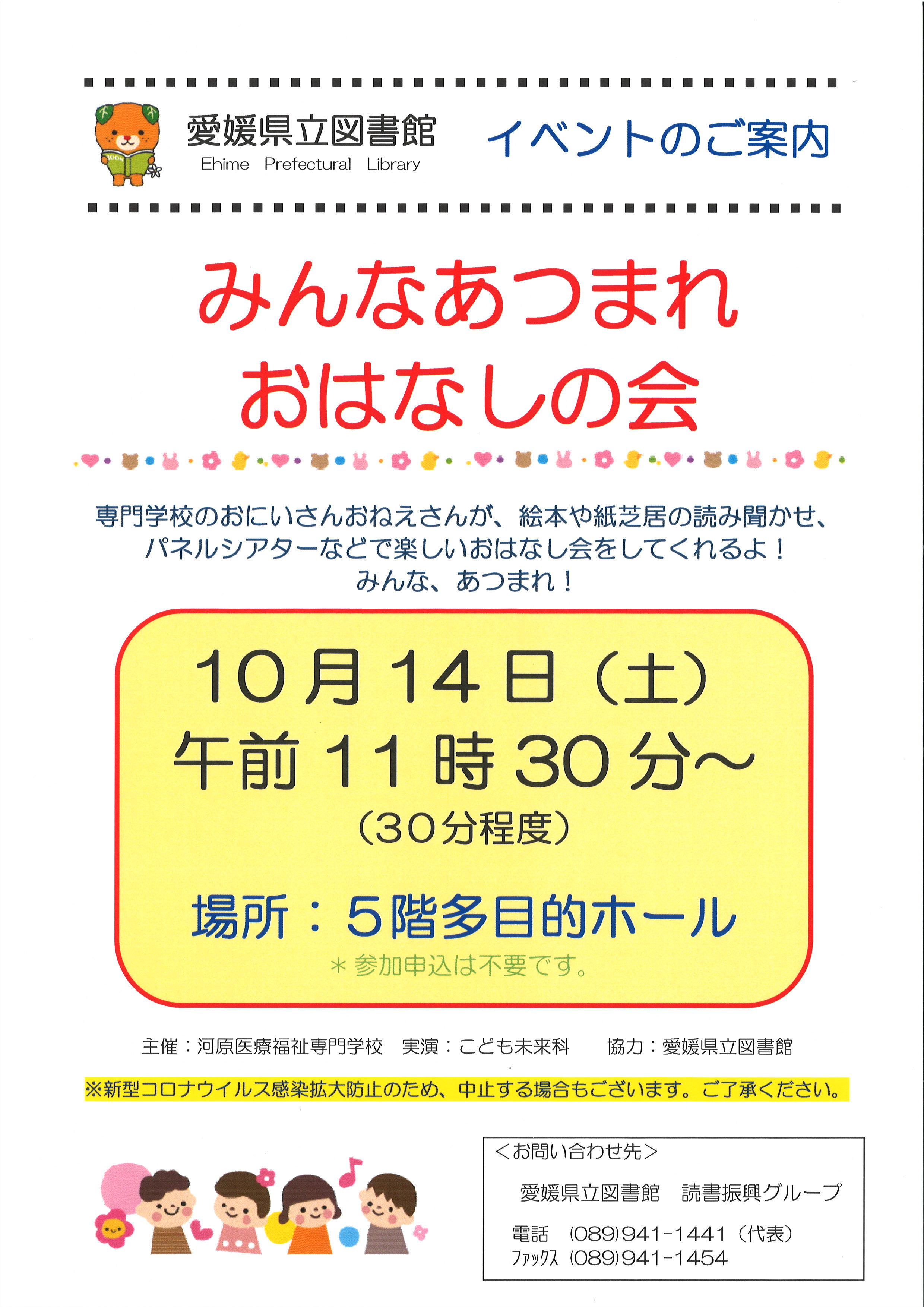 「みんなあつまれおはなしの会」チラシはこちらから。