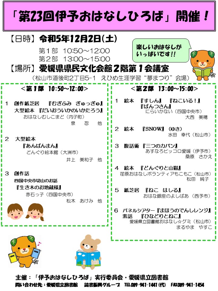 【終了】11月29日「第25回伊予おはなしひろば」を開催します