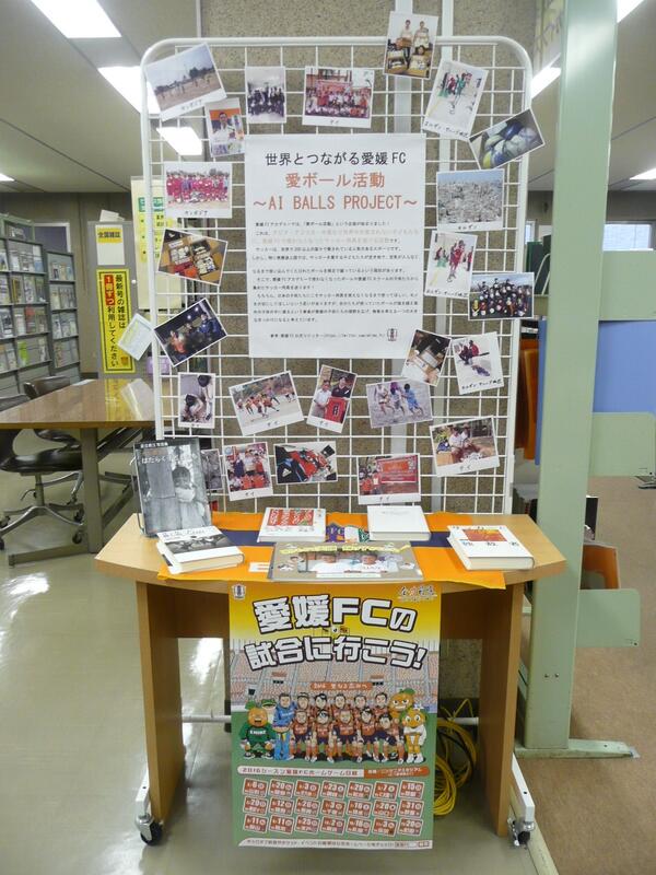 愛媛県立図書館では、写真で活動を紹介するとともに、関連図書を展示しています。