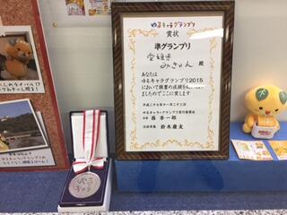 愛媛県広報広聴課様の御厚意により、ゆるキャラ®グランプリ2015準グランプリの賞状とメダルを期間限定で展示しています。